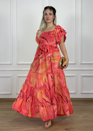 Élénk narancs és vöröses rózsaszín árnyalatok keverednek márványos mintában.