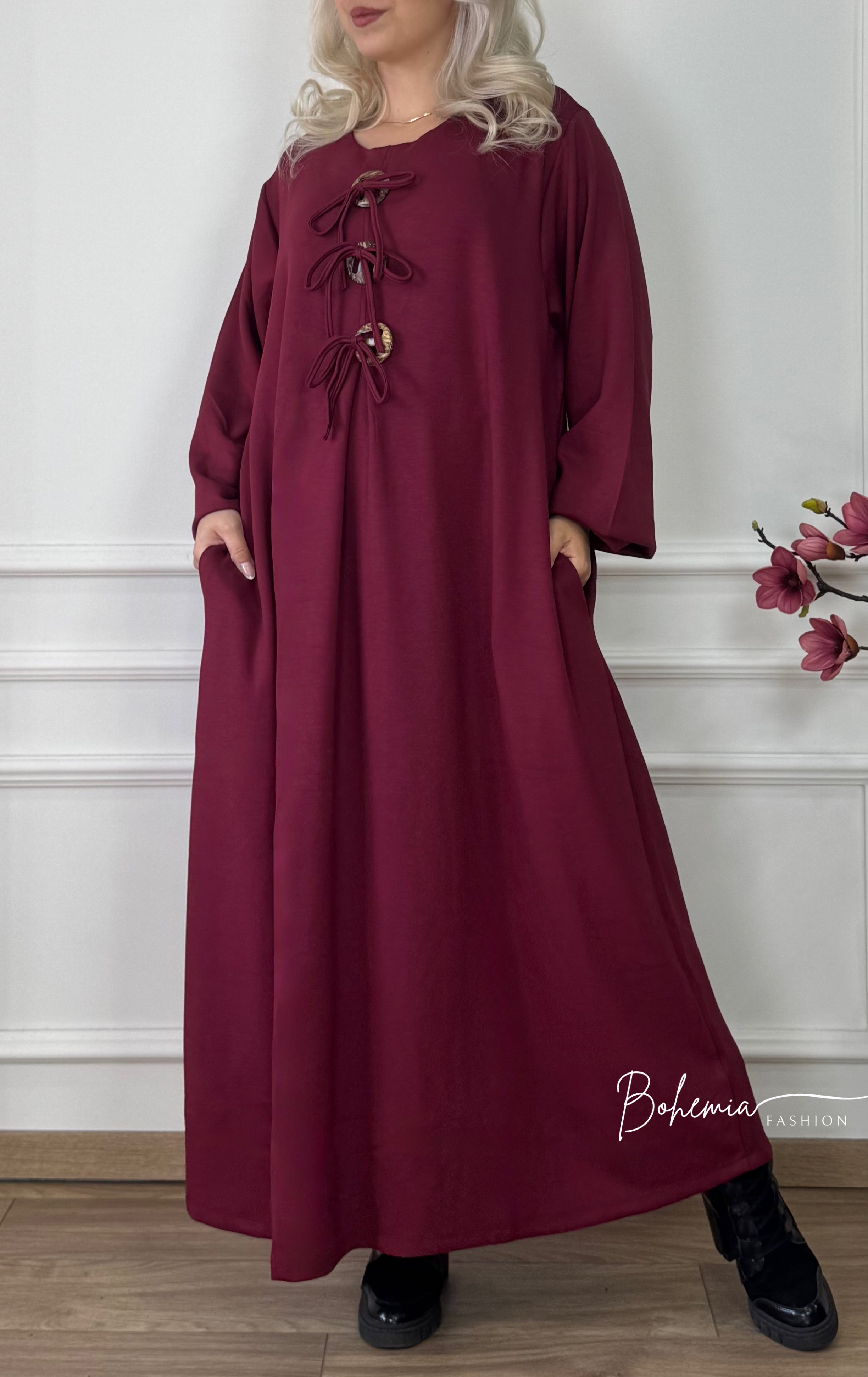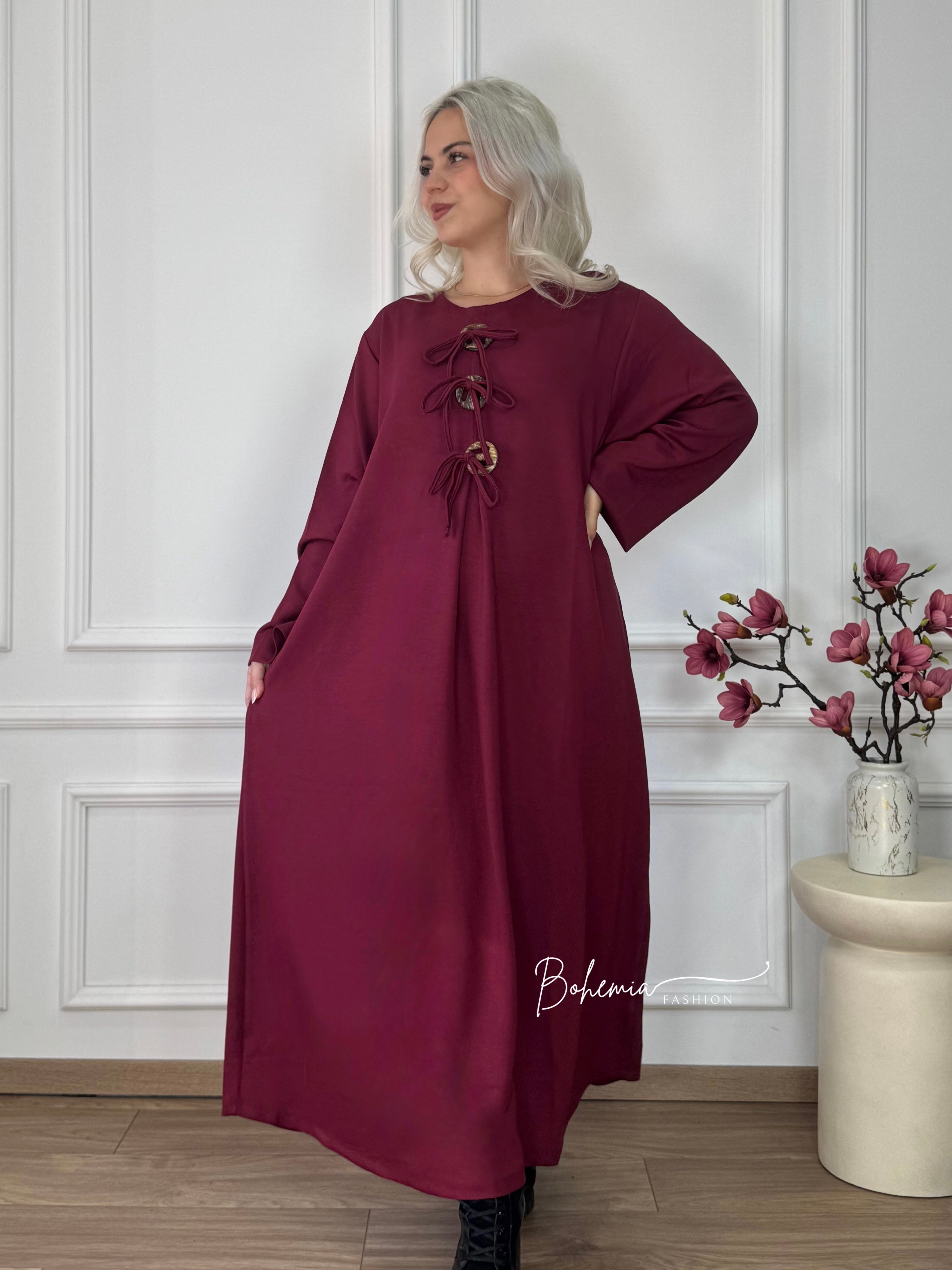 This long-sleeved viscose dress combines clean style and comfort. Three wooden buttons at the front make it special, and its soft, heavier fabric gives the wearer elegant movement. Two side pockets make this piece even more practical.