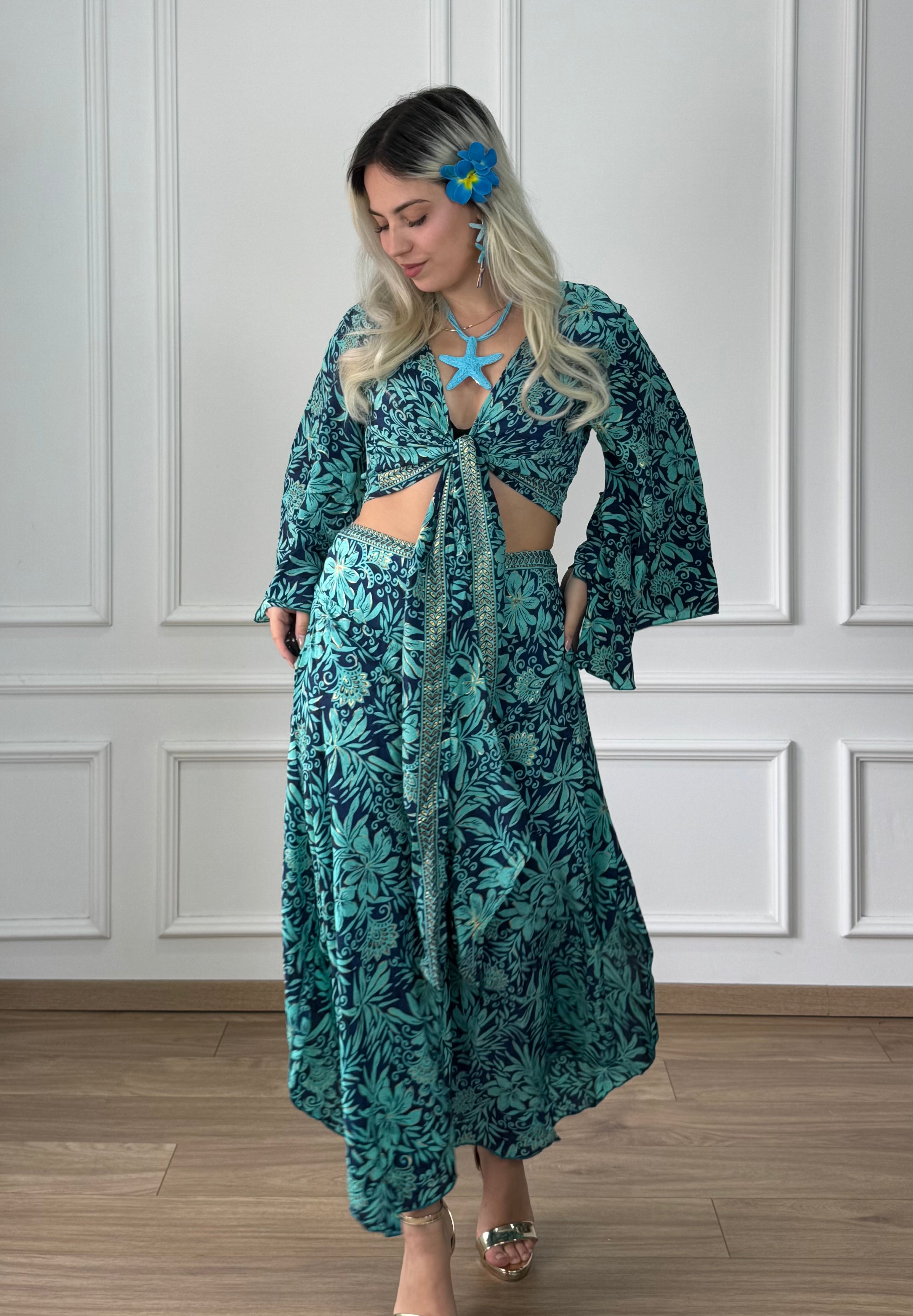 Porcelánfehér/Arany/Fekete Petrol Paisley Rózsaszín/Piros Tengerzöld Tengerkék Sötétkék/Türkiz virágokkal