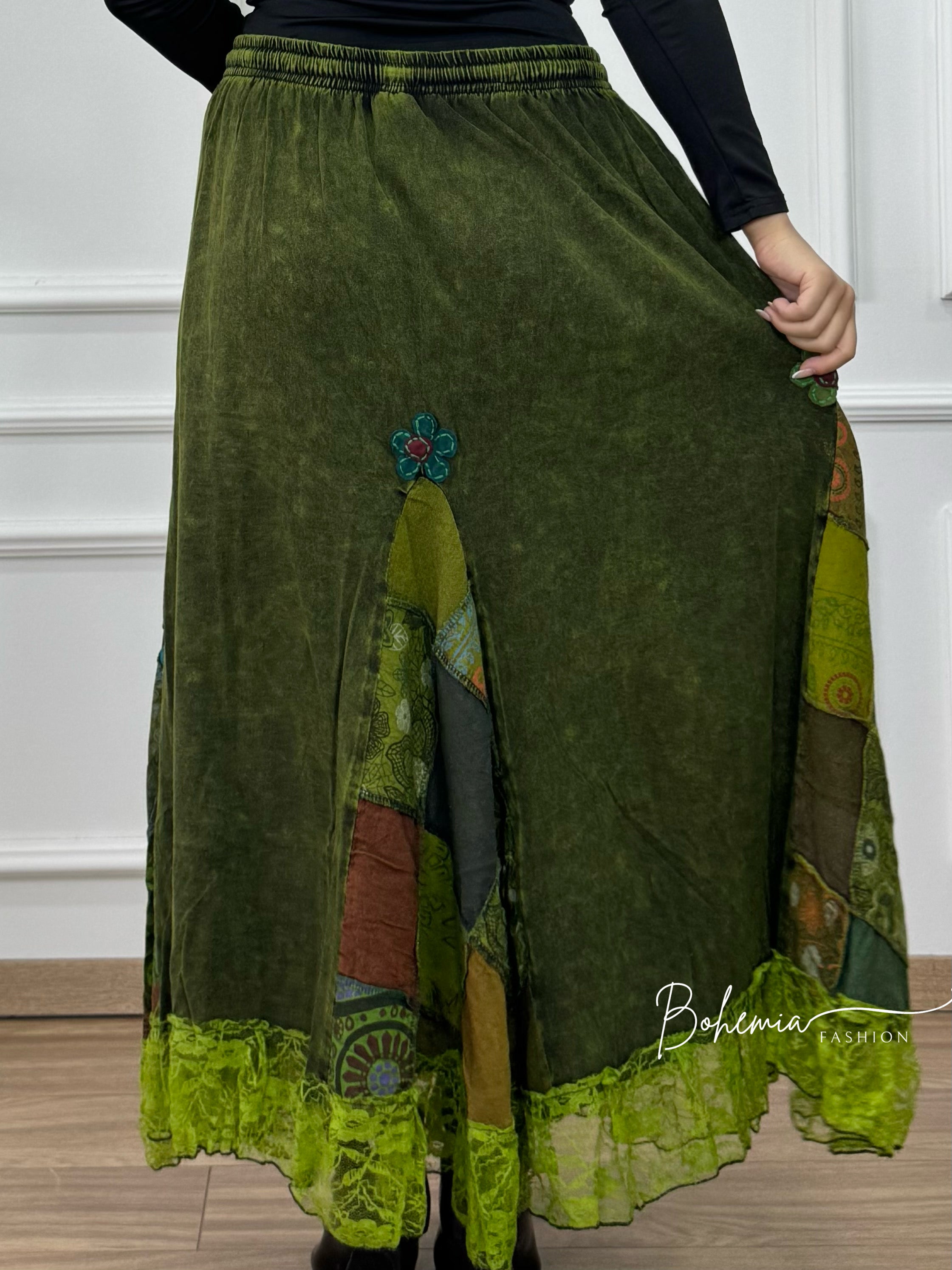 Virágdíszítéses patchwork szoknya